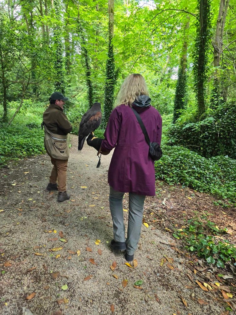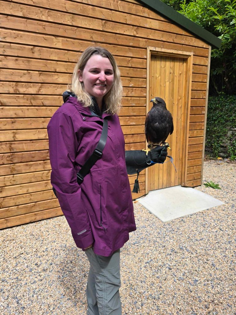 Today was actually great. Got a late start to the morning because of course I’m not sleeping the greatest lately. Then we were off to my hawk walk at the Ireland School of Falconry. This has been a bucket list item of mine for awhile courtesy of Nora Robert’s fantasy books. I got to fly the largest hawk in the school and she was absolutely stunning. Her name was Putóg which is olde Irish for pudding. They named her that after sticky pudding because she’s so solid and never loses her footing. It was very cool to see how silently she flew through the woods. Her ability to fly so quickly through very small gaps was incredible. This was one of my favorite experiences I’ve ever done and would highly recommend it to anyone that gets the chance to do it in their lifetime!